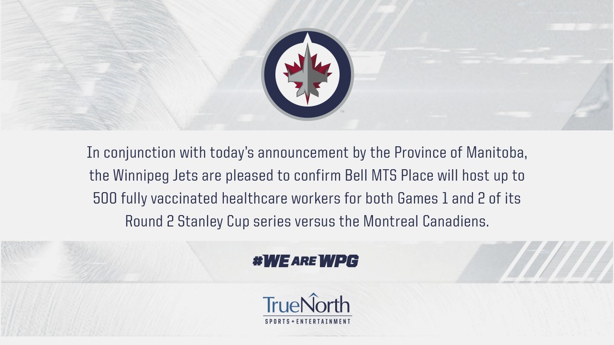 Ad Winnipeg Jets Single Game Tickets Available Online Here. The Winnipeg Jets are pleased to confirm Bell MTS Place will host up to 500 fully vaccinated health-care workers for both Games 1 and 2 reads a message on the clubs Twitter account. Healthcare workers physicians nurses allied health professionals and support staff from across Manitoba have been selected by a random lottery.